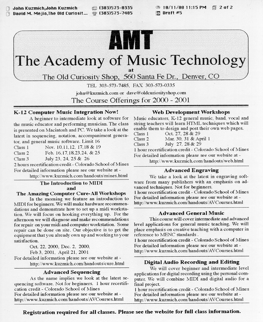 2000-2001 Academy of Music Technology Listing of Computer Music Workshops for Music Educators